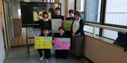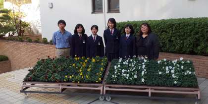 文化発表会終了後、吹奏楽部・ガーデニング部・ESS部の卒業アルバム部活動写真の様子です。