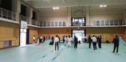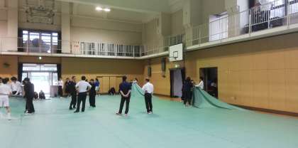 座席を片付け、シートの清掃をし、最後にシートを綺麗に巻きとって片付けます。