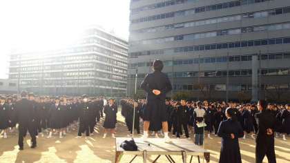 久しぶりの運動場での全校集会、東中学校の新しい歴史の始まりです!