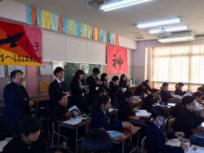 2限目1年3組の教室では、客本先生の英語の授業が行われています。