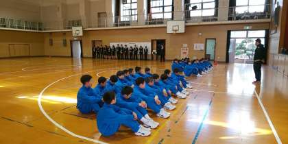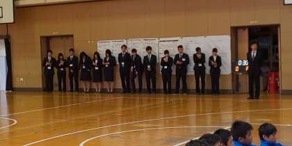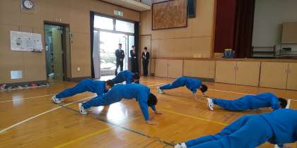 本日は、将来保健体育科教員を目指す教育学部の学生が、1年5組の授業見学をしています。