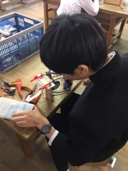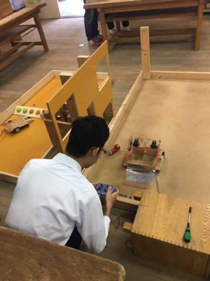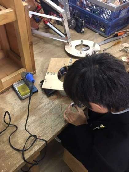 明日のロボコンに向けて、ロボットの最終調整をしています。
