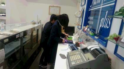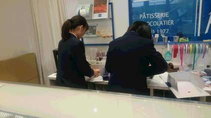 ケーキの箱を組み立てて、ケーキの箱詰めもしていました。