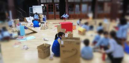 一緒に工作をしています。