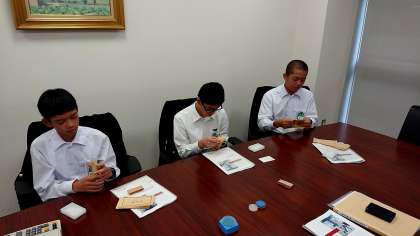 場所を替えて札勘(お札を数える練習)の体験です。