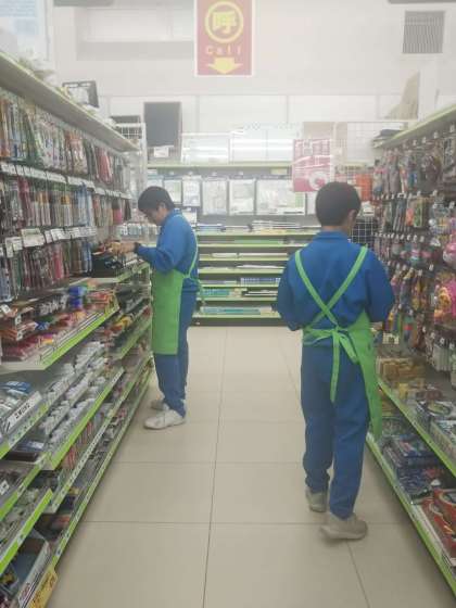 店内の商品の位置を確認したり、覚えたことをメモに記録したりしています。