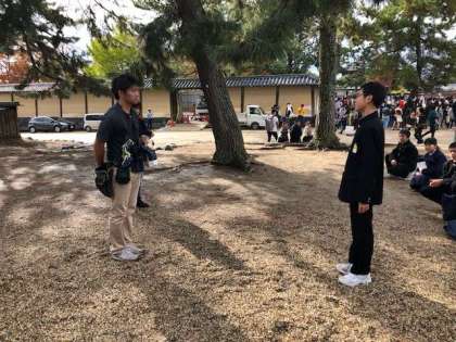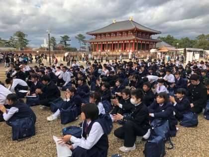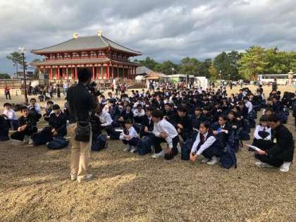 興福寺内で整列して、写真屋さんにお礼を言いました。