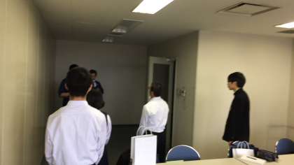 印刷工場にて、説明を聞いて今から見学に行きます。