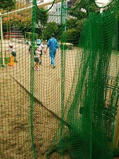 また、お迎えがまだの園児たちと園庭で活動している生徒もいました。