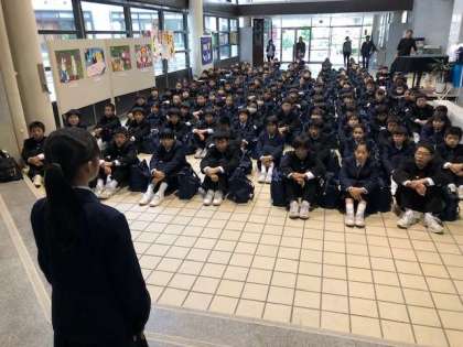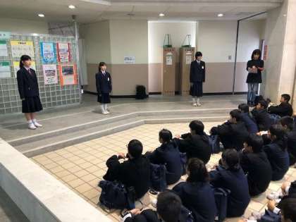 ホールで最後の解散式を実施しています。