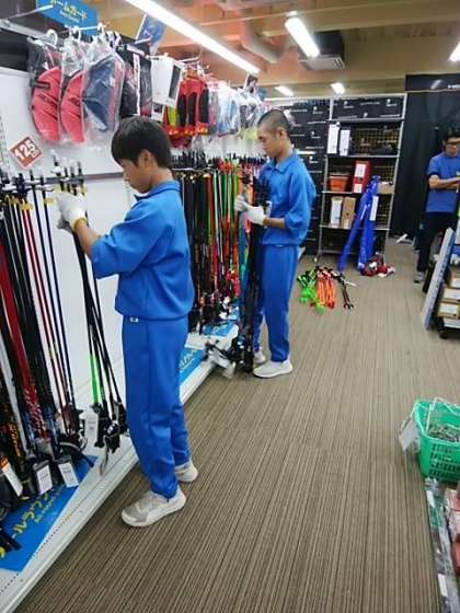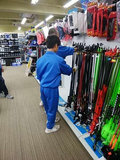 訪問時には、昨日と同様にストック売り場にいたのですが、実はこの直前にかなりの数のスキーを倉庫に運び込んでいたようで、休む間もなく働いていました。