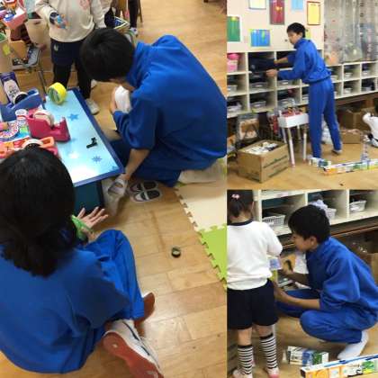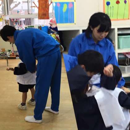 服を着せてあげたり、ボタンを留めてあげたりしていました。
