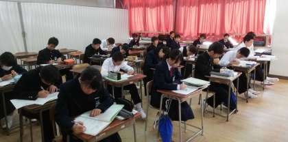 テストを受ける生徒以外も歌唱テストの歌声を聞いて、その感想を書くなど取り組んでいます。