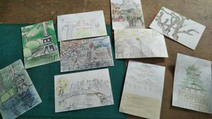 天守閣を選ぶ部員が多いですが、どの位置から描くかは人それぞれです。