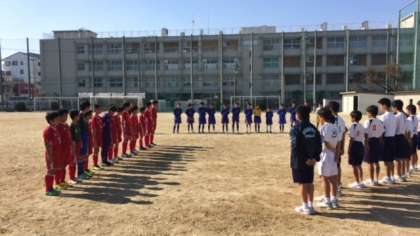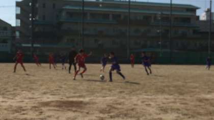 相手のロングボールに、東中のセンターバックとサイドバックがお見合いする形になりクリアできず、そこを相手フォワードに詰められ、先制されてしまいます。