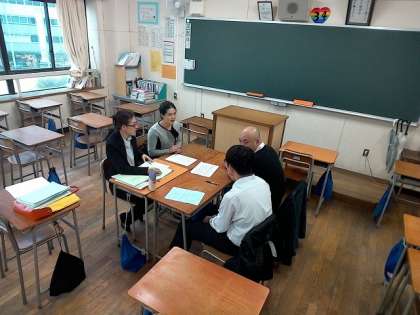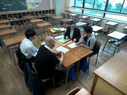 3年4組の教室では、進路希望調査をもとに具体的な相談が行われていました。