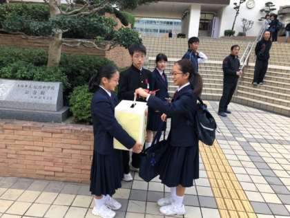 今日から4日間、生徒会執行部による赤い羽根共同募金活動を行なっています。