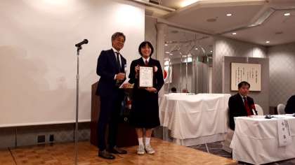 東中生に表彰状と記念品を授与されました。