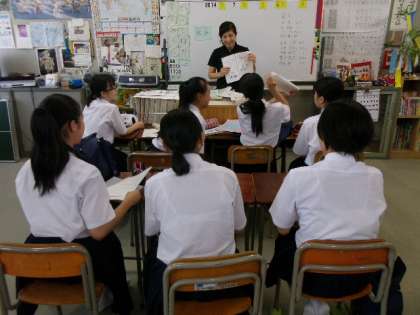 少し前になりますが、7月15日に大阪市立豊崎中学校にある帰国した子どもの教育センター日本語適応教室に3年生の生徒たちと行ってきました。3年生は、6月より国際理解をテーマに前期人権教室を実施しています。そこで、日本語が分からない外国からきた中学生が、どのように日本語を学習しているかを見学することにしました。東中学校でも現在日本語適応教室に通っているクラスメートがいます。日本に来て、どのように日本語を習得してきたか、そして、外国からきたクラスメートをはじめ、同年代の中学生の思いを知ることで一番身近な国際理解の機会になると思い、有志を募って取材し、後期の学習につなげようと企画しました。この事前学習(取材)内容は、後期の人権学習「国際理解教育」の導入として、3年生全員にプレゼンテーションをしていこうと考えています。