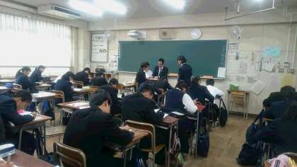 静かに集中して書いています。終わったら、先生に点検してもらいます。