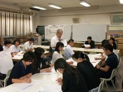 7月23日(水)に東中学校と開平小学校、中大江小学校、南大江小学校、玉造小学校の教員が集まり、「道徳」での交流会が開かれました。