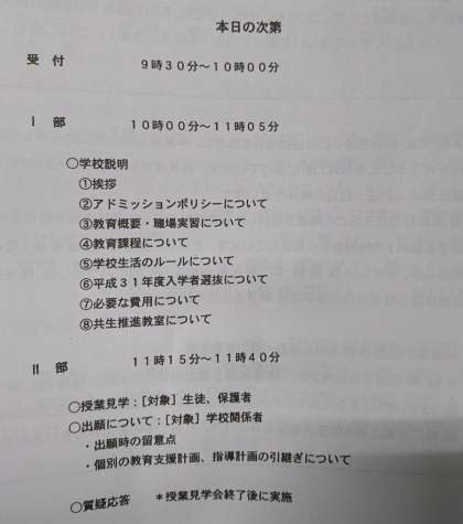 高等支援学校の学校見学会に参加しています。緑いっぱいの学校で、農園芸などの実習もしやすそうです。