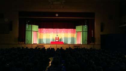 本日午後からは全校で芸術鑑賞会を行います。今年度は「日本の伝統芸能」です。