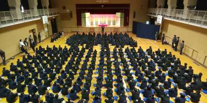 生徒会の司会進行のもと、芸術鑑賞会が始まりました。