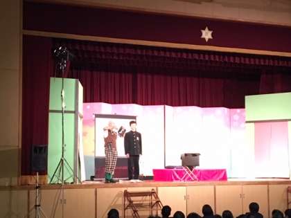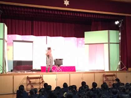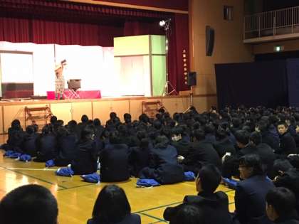 紙切り芸です。生徒も巻き込んで、楽しそうです!