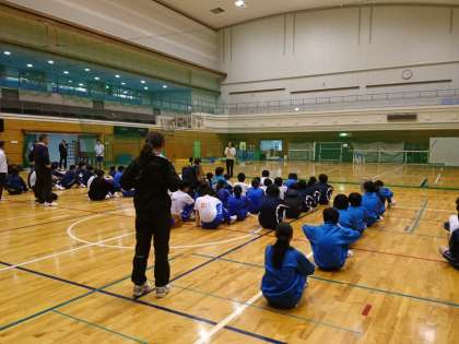 プールを楽しんだあとは閉会式でした。帰りのバスの時間までサブアリーナで過ごしています。