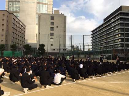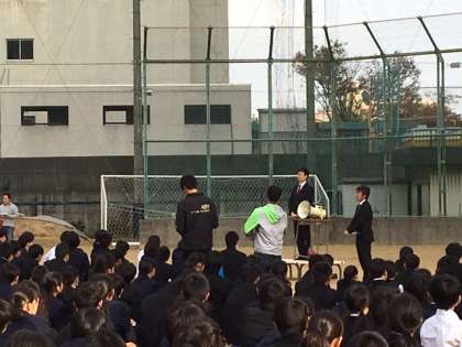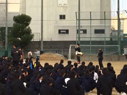 校長先生からの講評の後、津波を想定して3階以上に移動する訓練も行いました。