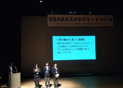 第二部は「適切なネット利用対策実践事例プレゼンコンクール」として、小中高校生がそれぞれの学校の取り組みを紹介しました。