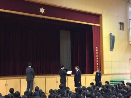 本日の全校集会では、まず、表彰状の伝達が行われ、その後各委員会からの連絡がありました。