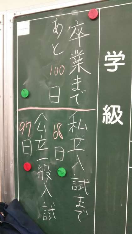 あるクラスの黒板には、「卒業」、「入試」までのカウントダウンが書かれてありました。