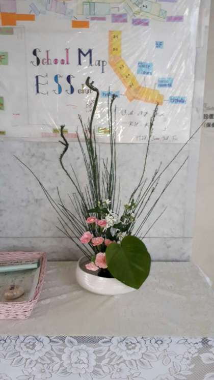 いつもの場所に、いつものように、美しくかわいい花々が、東中生を癒してくれています。