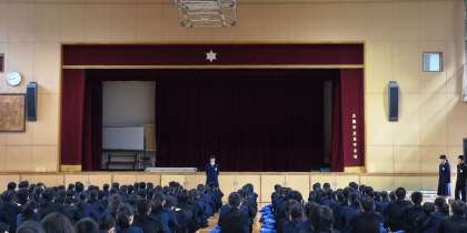 授業の始めと終わりのあいさつが優秀なクラスの表彰がありました。