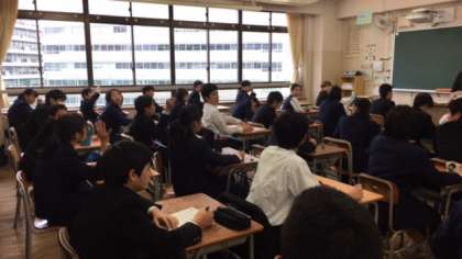 2年生では各クラス、班活動も含めた二学期の振り返り、テストの反省や「いいとこみつけ」を行っています。