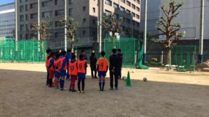 本日は学校での練習でしたが、1対1や2対2、フィールドのサイドの幅をしっかり使ってパスを繋ぐことなどを意識しながら行いました。