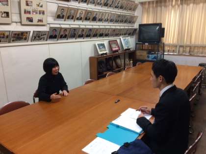 学校現場の様子を見学に来られている大学生が、東中の先生方にインタビューをされています。