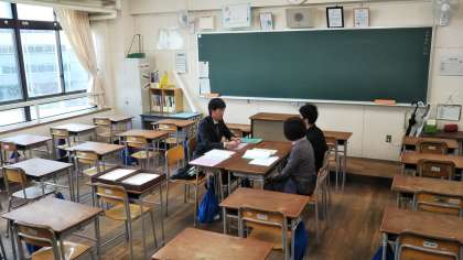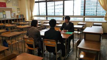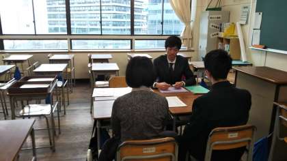 2学期の成績を確認しながら、三者懇談会が進められています。