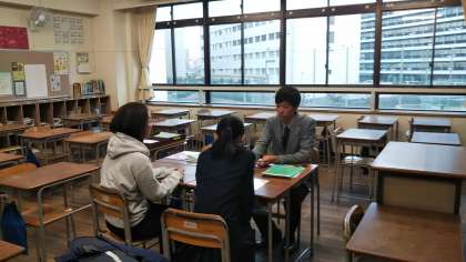16時を過ぎて少し肌寒くなってきましたが、教室内は「熱い」話が担任の先生と共に交わされています!