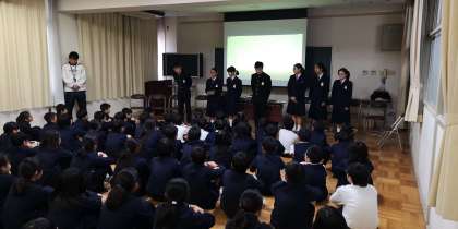 生徒会とESS部の生徒が、玉造小学校を訪問しています。