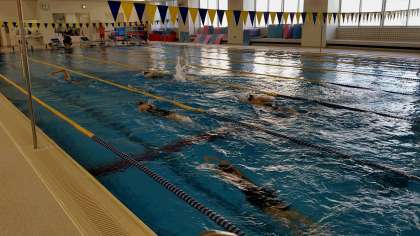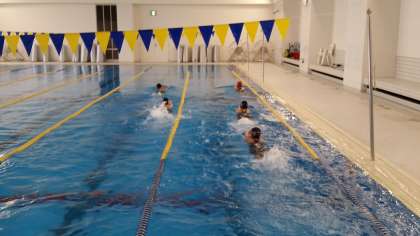 本日水泳部は、冬季練習で高校の温水プールをお借りしています。