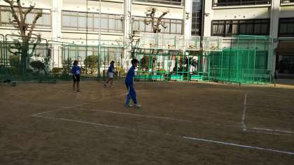 1年生は、先輩のボールを返すのに一所懸命に頑張っています。