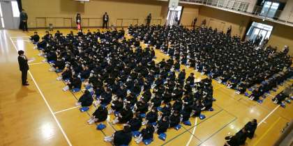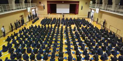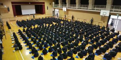 きちんと整列された状態で終業式の校長先生の講話では、3年生との校長面接での話、『1・2年生に託したいこと』について、お話をいただきました。