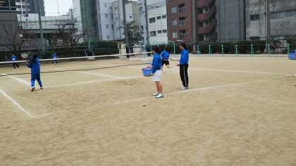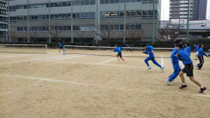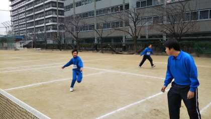 テニスの練習だけでなく、身体を温めるのにリレーも取り入れて活動しています。