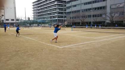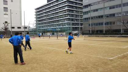 すぐに準備、ウォーミングアップをし、ラリーをしています。