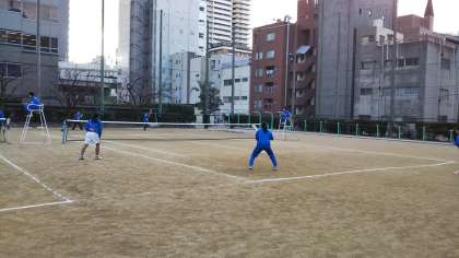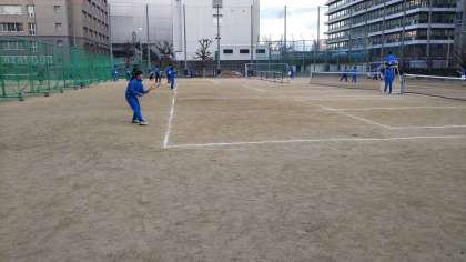 限られたスペースの中で工夫してネットを立てて練習しています!