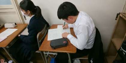 3年生の各学級では、私学入試の願書の作成に取り組んでいます。