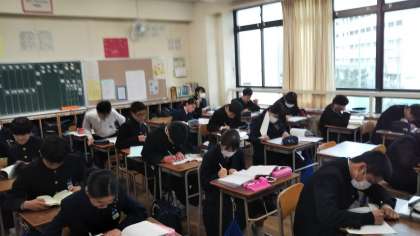 落ち着いて、出願書類の清書をしています。訂正のないようにしましょう!